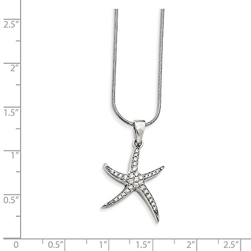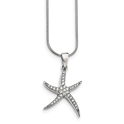 Solid 925 Sterling Silver & CZ Cubic Zirconia Starfish Necklace Chain 18"