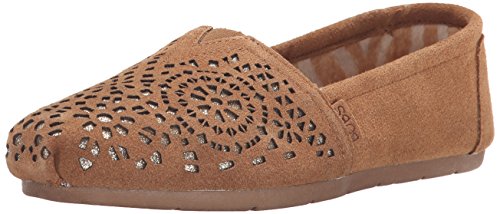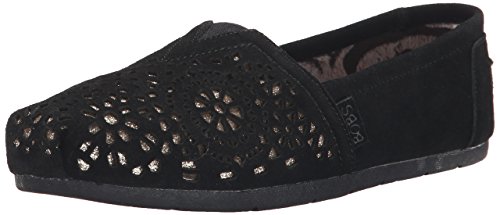 Artful style and luxe comfort join together in the SKECHERS Luxe Bobs - Stained Glass shoe. Soft suede upper in a slip on casual alpargata moccasin flat with stitching and cutout accents. Memory Foam insole.
