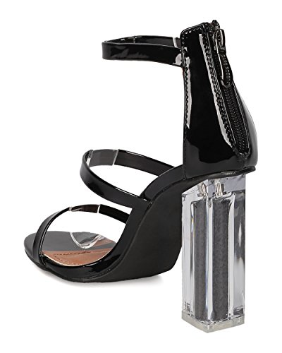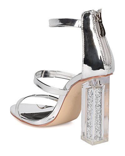 Women Glitter Core Lucite Block Heel - Triple Strap Heel - Square Perspex Heel - HK16 By Cape Robbin