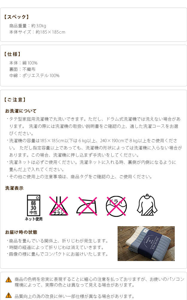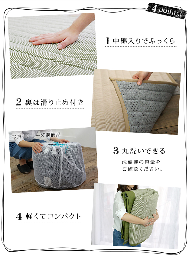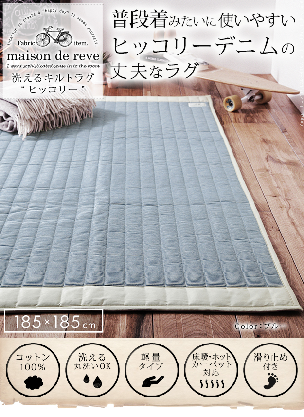 ●コットン 洗えるラグ キルト スミノエ 丸洗い 185 滑り止め付き