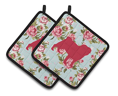 Caroline's Treasures Pug Shabby Chic Blue Roses Pair of Pot Holders BB1112-RS-BU-PTHD, 7.5HX7.5W, Multicolor