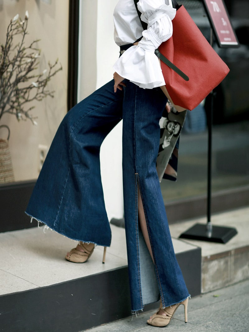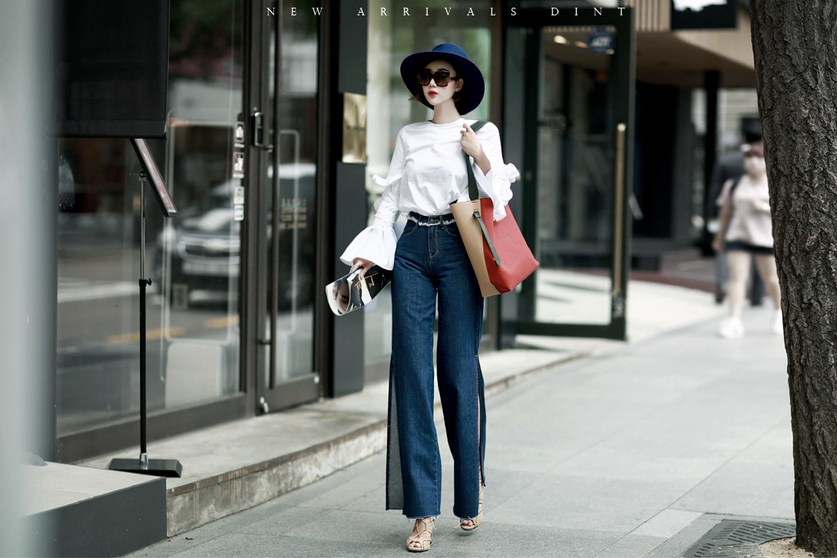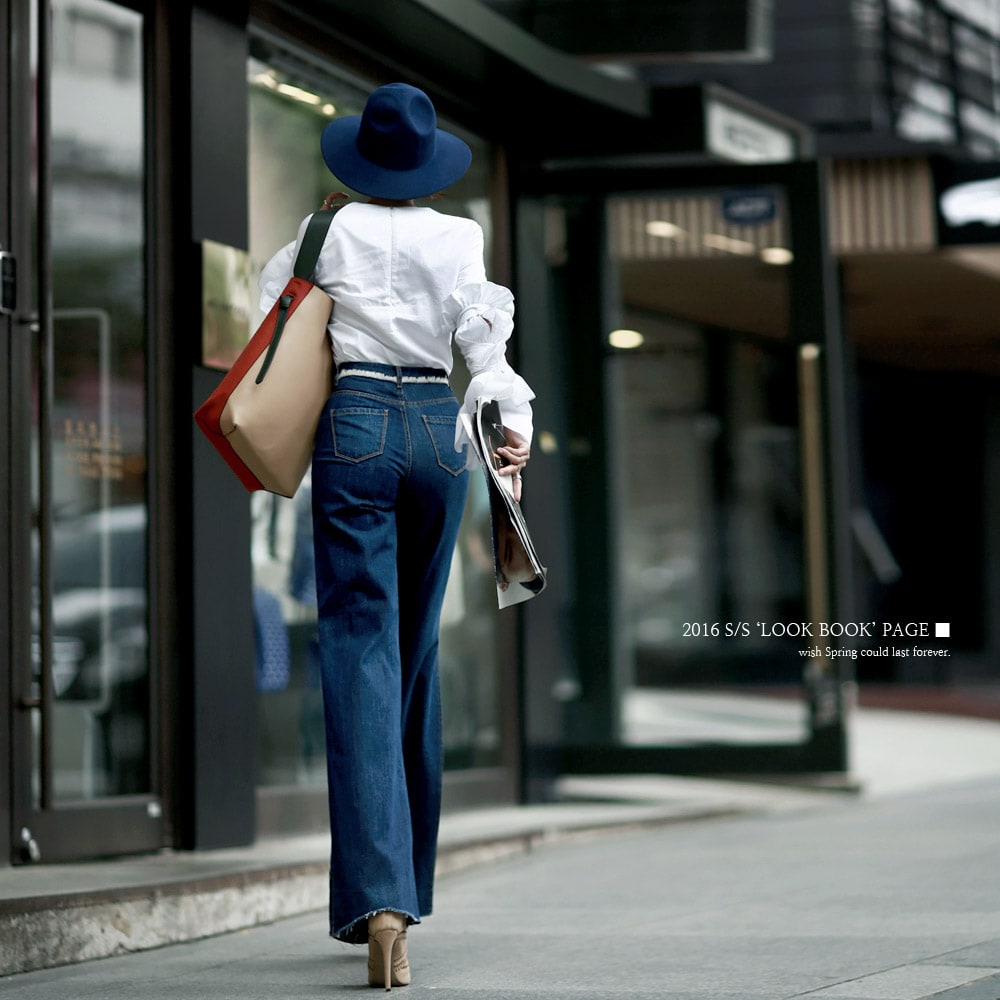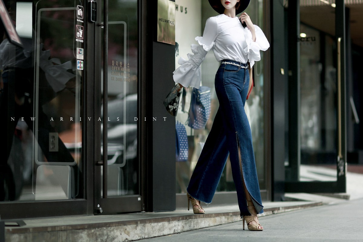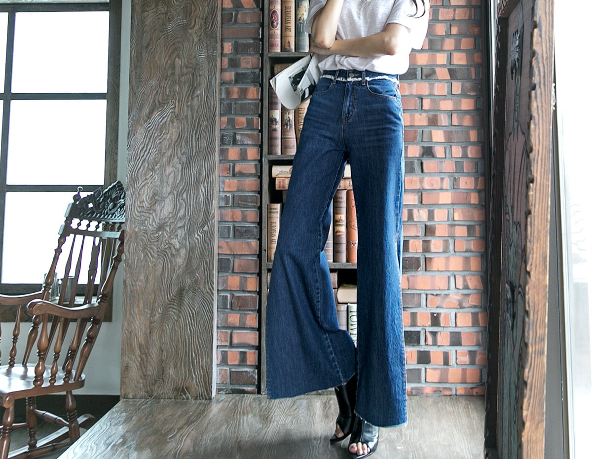 PJ277 프린지 웨이스트 딥 슬릿 데님 팬츠*자체제작* Blue