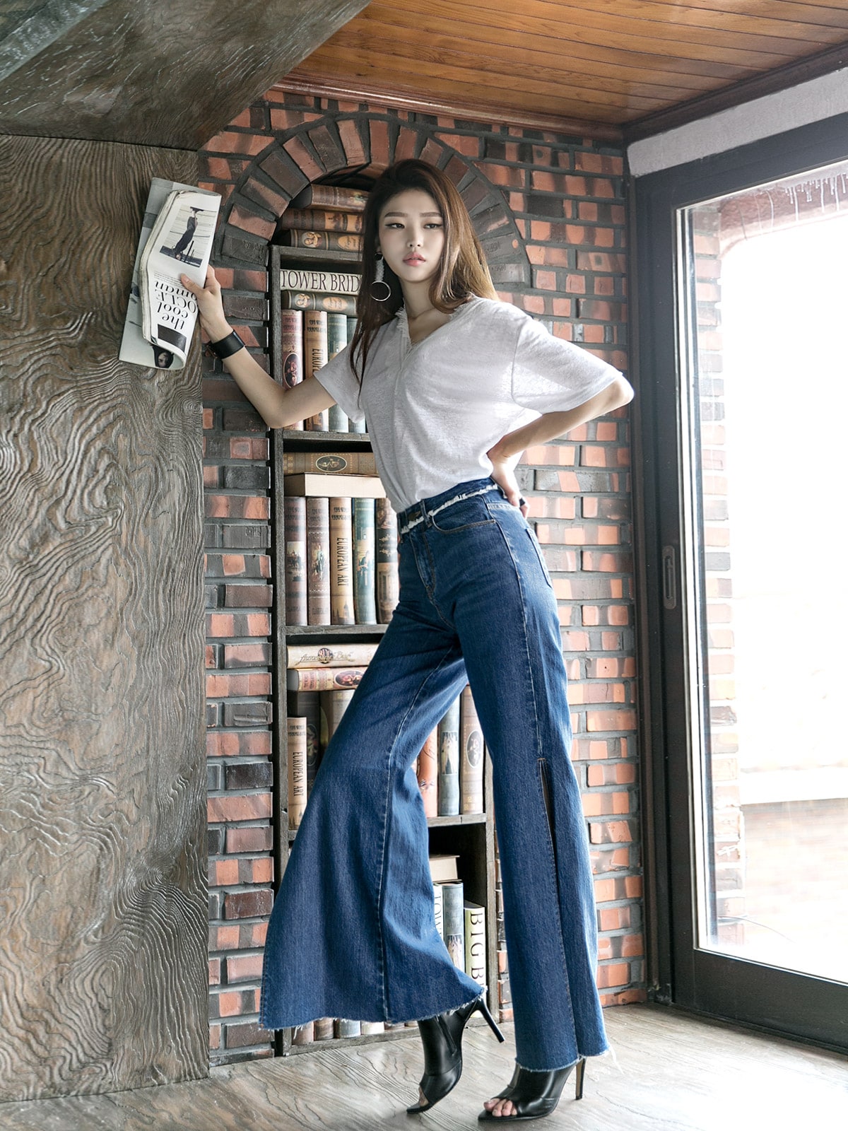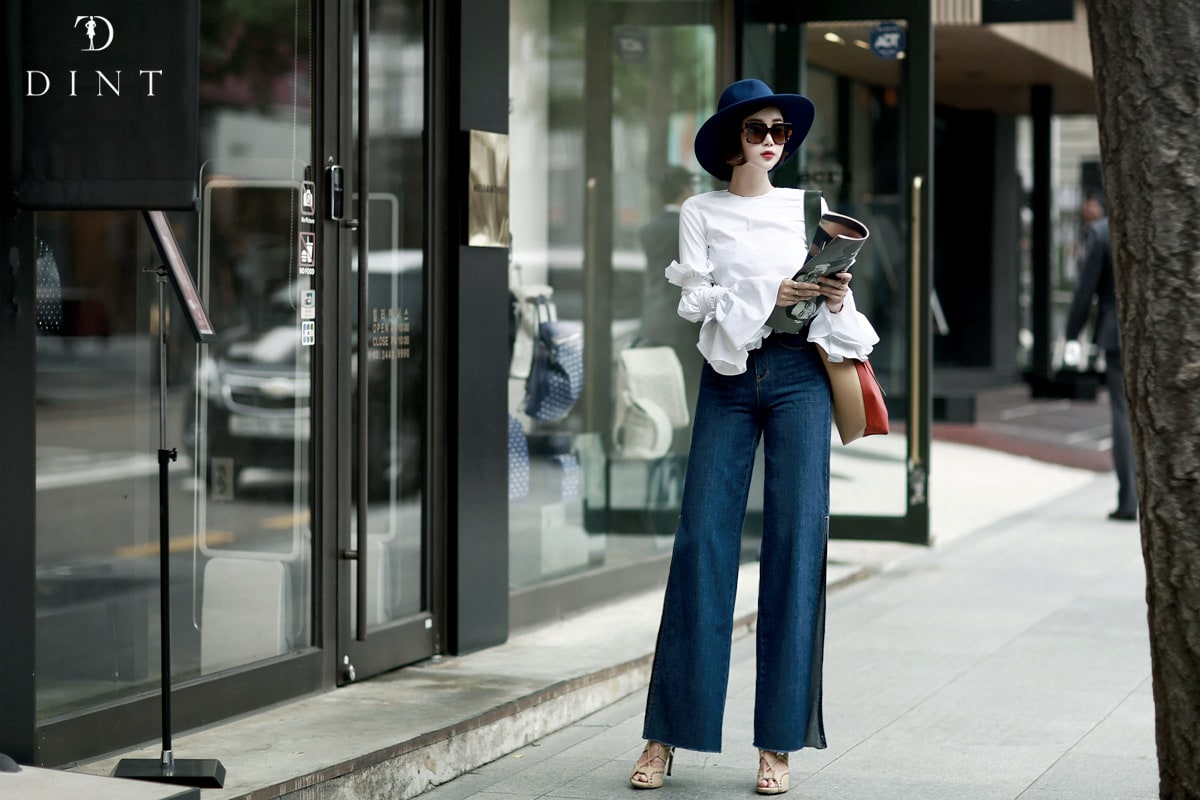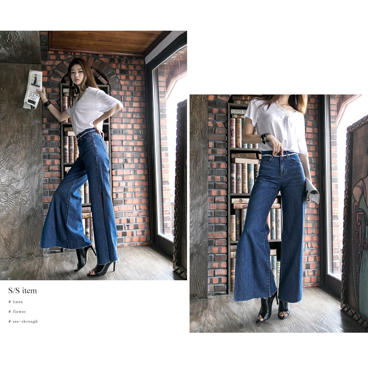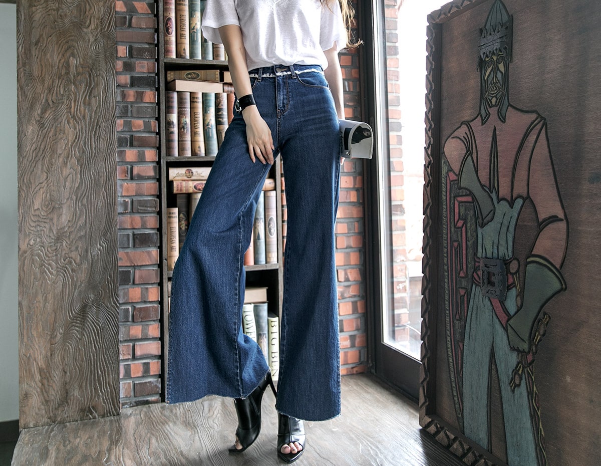 PJ277 프린지 웨이스트 딥 슬릿 데님 팬츠*자체제작* Blue