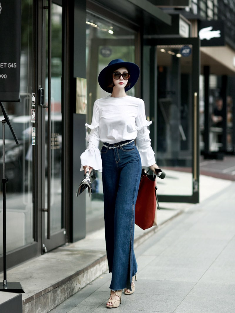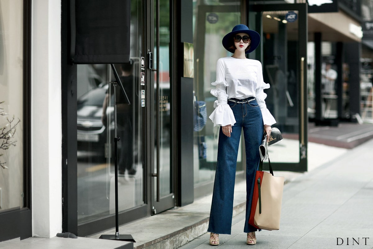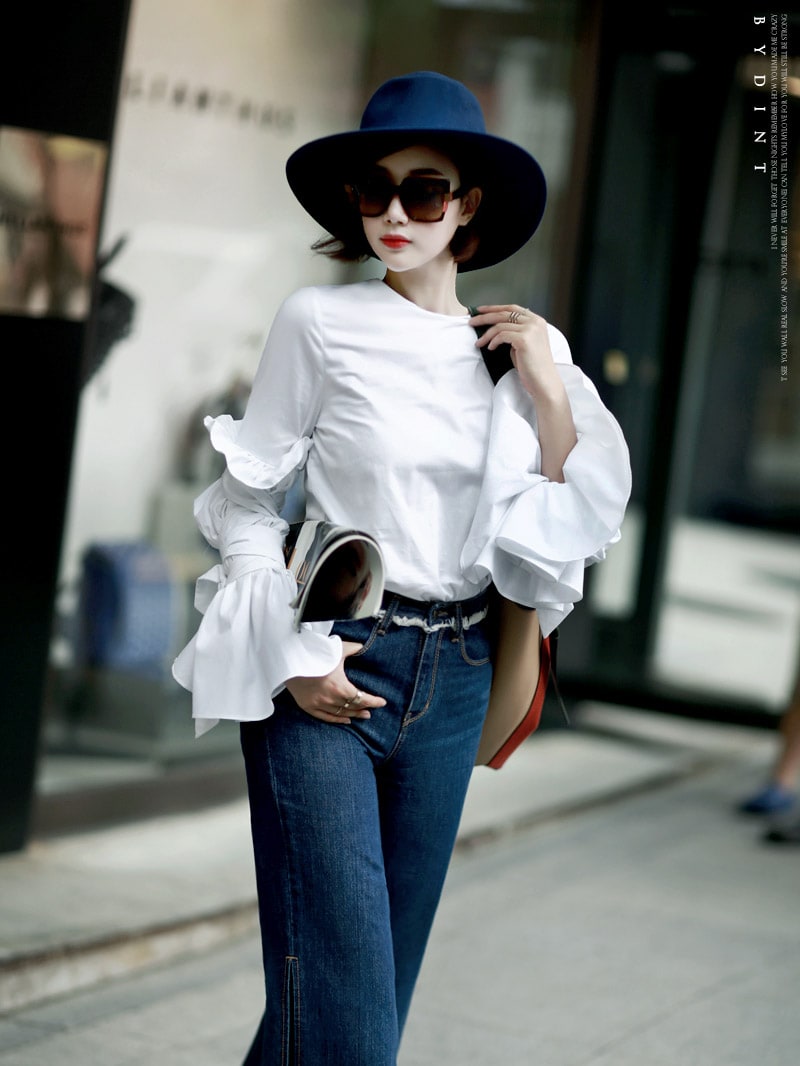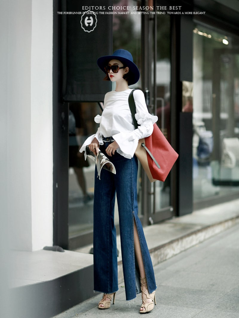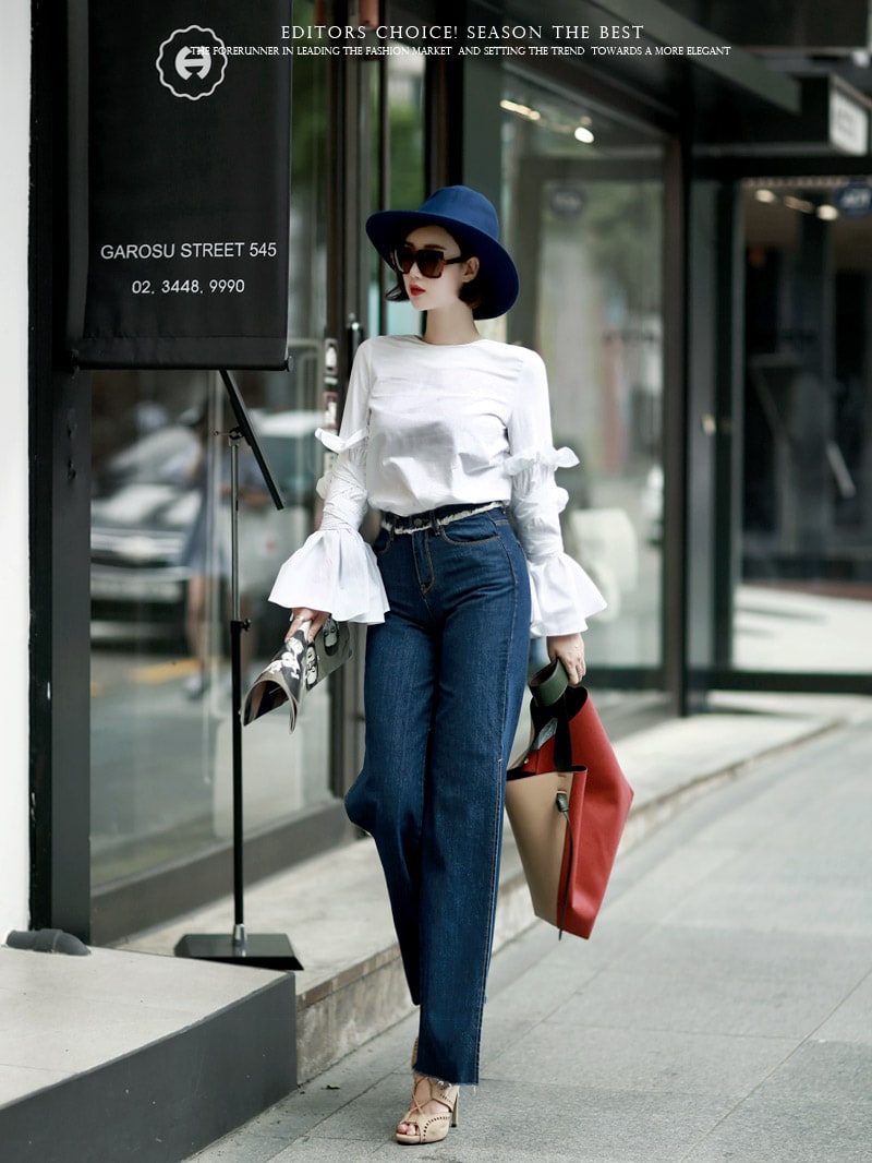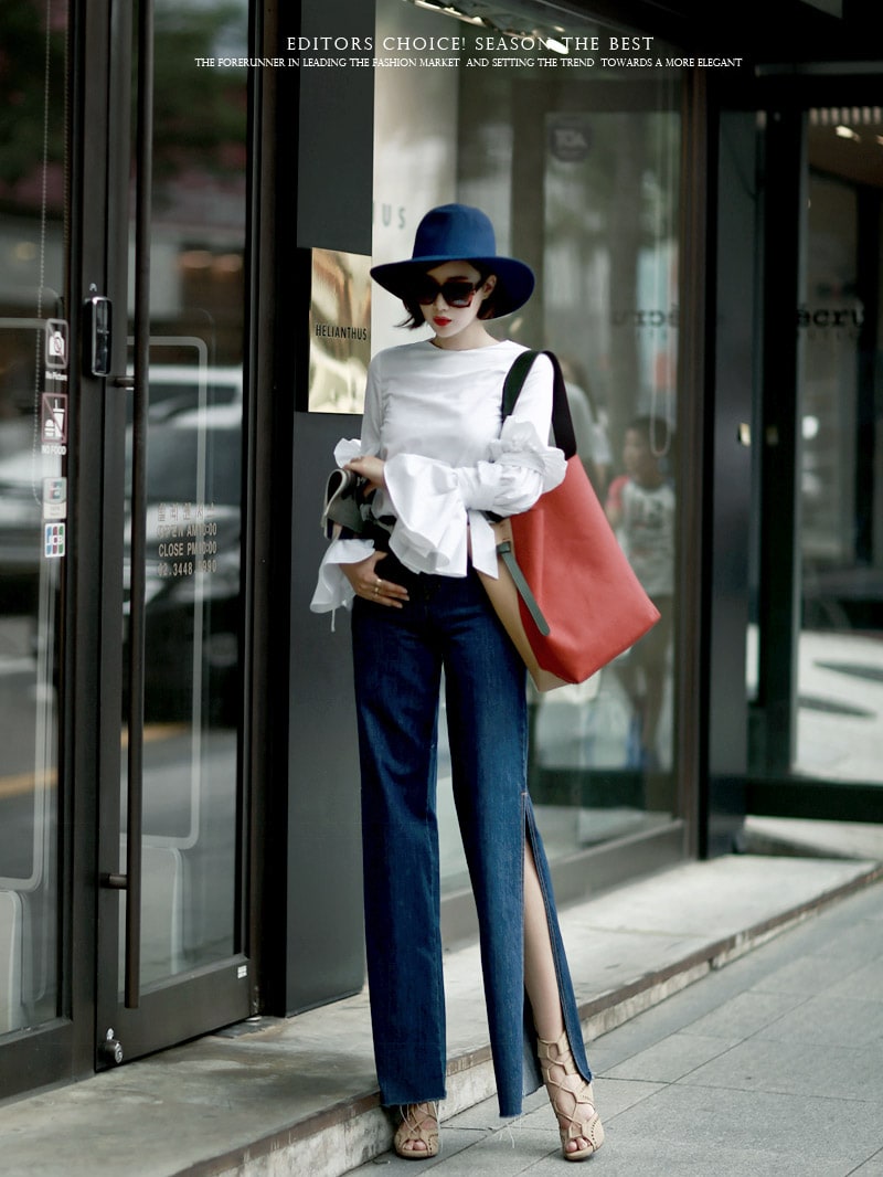 B1844 트럼펫 슬릿 슬리브 블라우스 Ivory