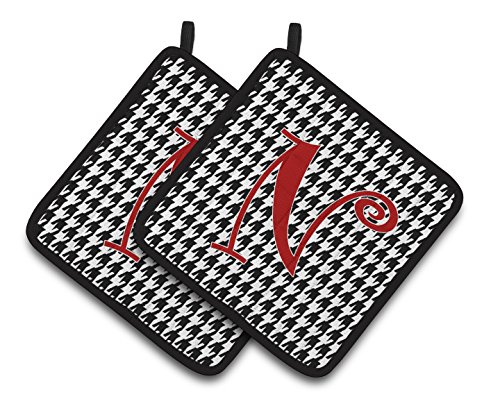 Caroline's Treasures Monogram Initial N Houndstooth black Pair of Pot Holders CJ1035-NPTHD, 7.5HX7.5W, Multicolor