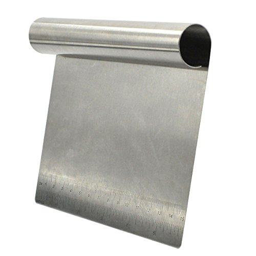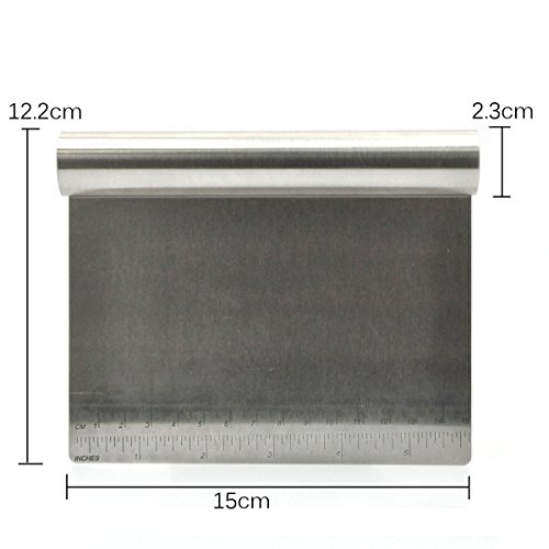 Studio : Prokitchen Publisher : Prokitchen Product Description The Prokitchen Kitchen Food Scraper Bench Scraper Chopper has many use.This is a great kitchen tool.Great for cutting dough,bread,cake,cream,pizza,baking,homemade caramels and homemade soap,etc...It can also clean up flour messes.You can cut out any length you want.The Prokitchen Kitchen Food Scraper Bench Scraper Chopper is easy to clean and use. Specifications: Material: premium stainless steel Size: 6 x 4.8x 1 inch (15 x 12.2 x 2.3cm) Color: silver Weight: 5.57OZ (174g) Measurement Type: inch and double scale ( inch and centimeter) Package include: 1 x dough scraper 0