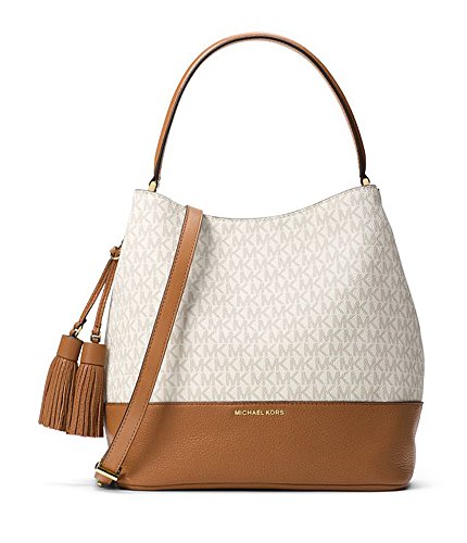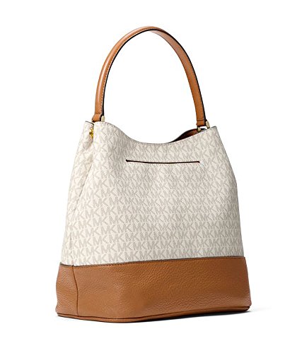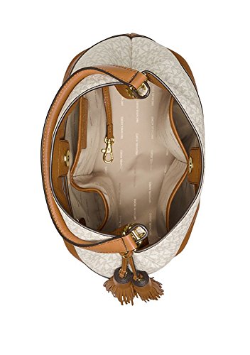 Product Description Versatile and stylish, this signature MICHAEL Michael Kors bucket bag boasts an unexpectedly roomy silhouette with two ways to carry. A back magnetic snap pocket is perfect for keeping your phone instantly within reach while on the go. 15-1/2"W x 11"H x 7"D Interior features 1 zip pocket, 4 slip pockets and key clip 7"L handle; 19"-22"L adjustable strap Magnetic snap closure Exterior features gold-tone hardware and 1 back magnetic snap pocket 0