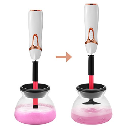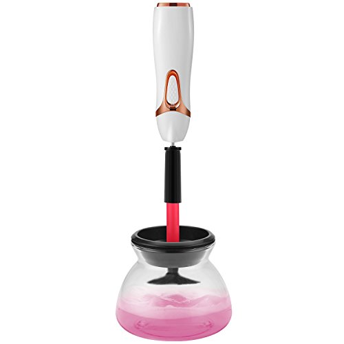 - [ Easy to Operate ] – Just 4 Steps: 1-Put water & soap into the bowl. 2-Dip & dunk the brush in soap water. 3-Spin to clean. 4-Spin to dry. Besides, 8 collars fit for most makeup brushes with various sizes.