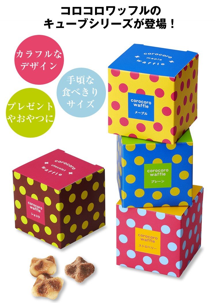 • 内容量 プレーン、メープル、ショコラ、ストロベリー、ソルティキャラメル各3個(50g) (箱サイズ:約60mm×約60mm×約60mm)