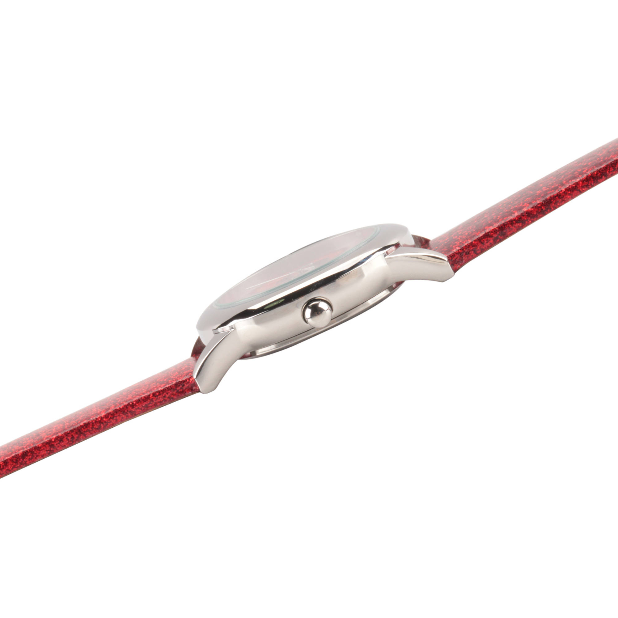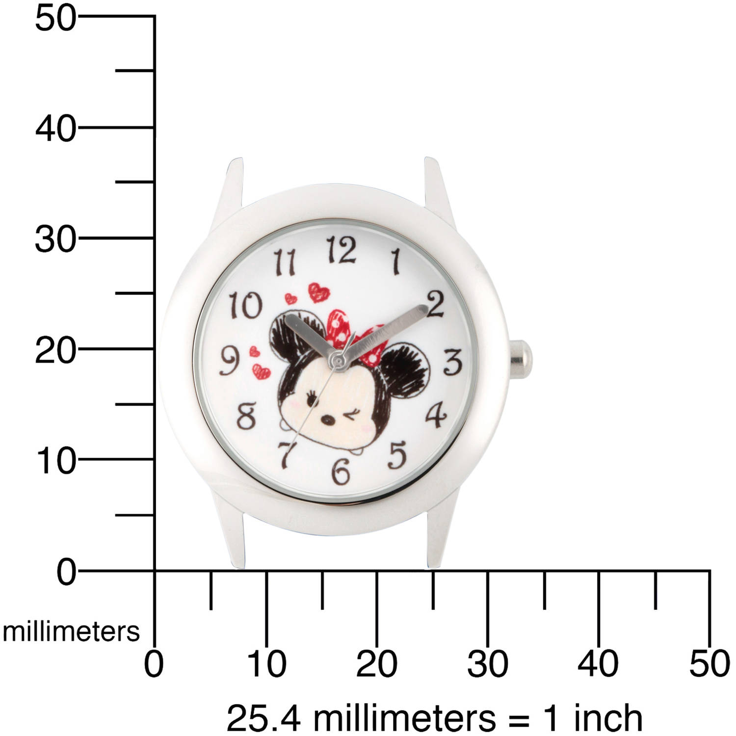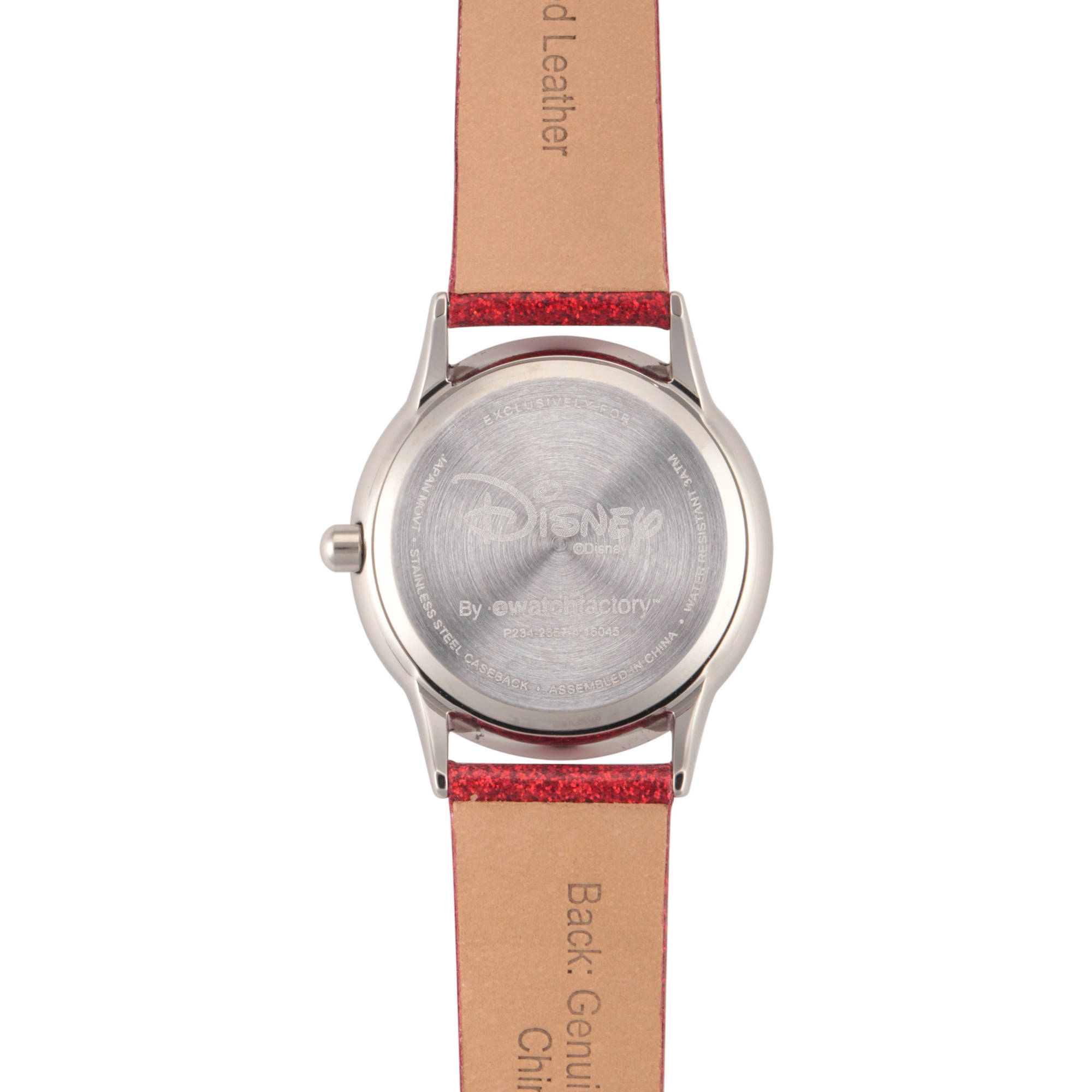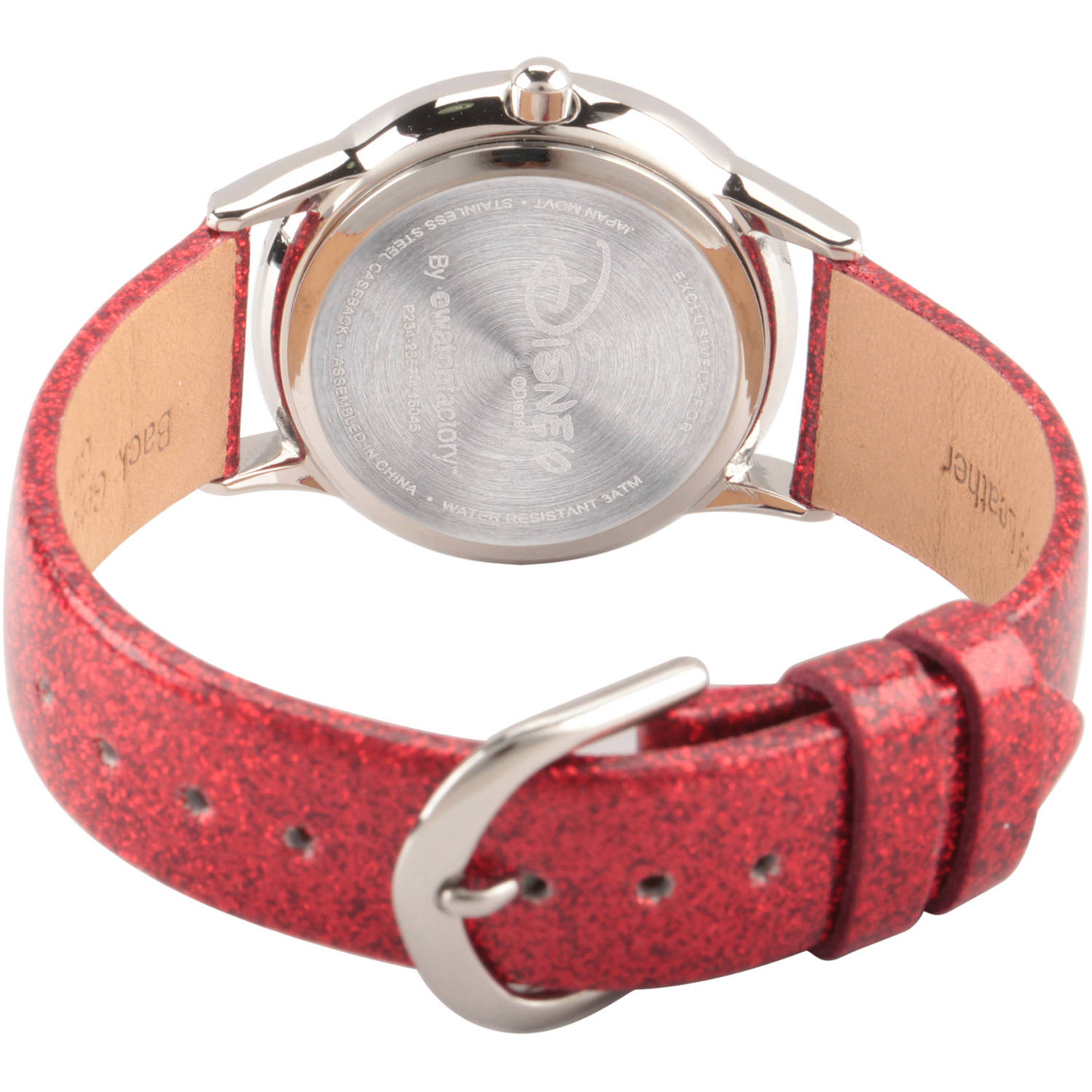 This Disney Tsum Tsum Minnie Mouse Girls Stainless Steel Time Teacher Watch features a red glitter strap. Disney Tsum Tsum Minnie Mouse Girls Stainless Steel Time Teacher Watch, Red Glitter Strap: