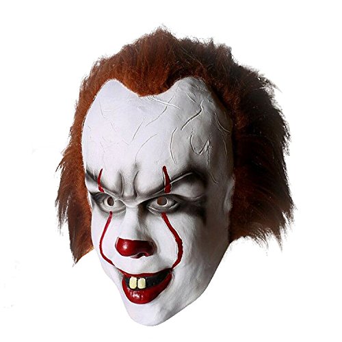 -. Feature : Pennywise Cosplay Halloween Full Face Clown Mask Props / Material: latex / Designed to be worn by adults and teens / Including:full head mask(one size fit most) / Perfect for a Halloween party, cosplay, convention, dress up, or theme party.
