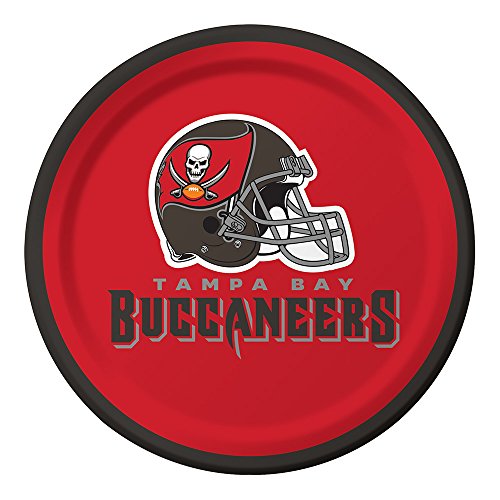 -. Feature : Tampa Bay Buccaneers bundle includes: 8 dinner plates, 8 dessert plates, & 16 napkins / Dinner plates measure 8.75-Inch diameter / Dessert plates measure 6.75-Inch diameter / Paper plates coated for durability and soak-proof moisture control / Disposable tableware for your football or tailgating party!