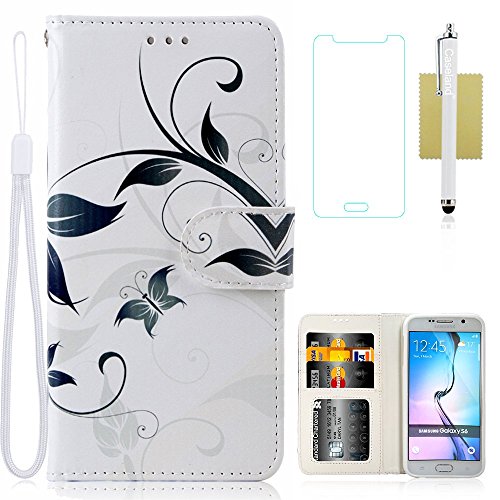 Galaxy S6 Case,Galaxy S6 Wallet Case,CASELAND [Premium Pattern] Wallet Stand PU Leather Fashion Design Flip Cover Case For Samsung Galaxy S6 [White Flower]