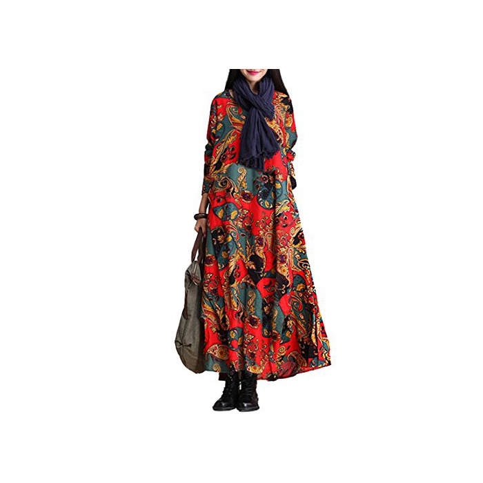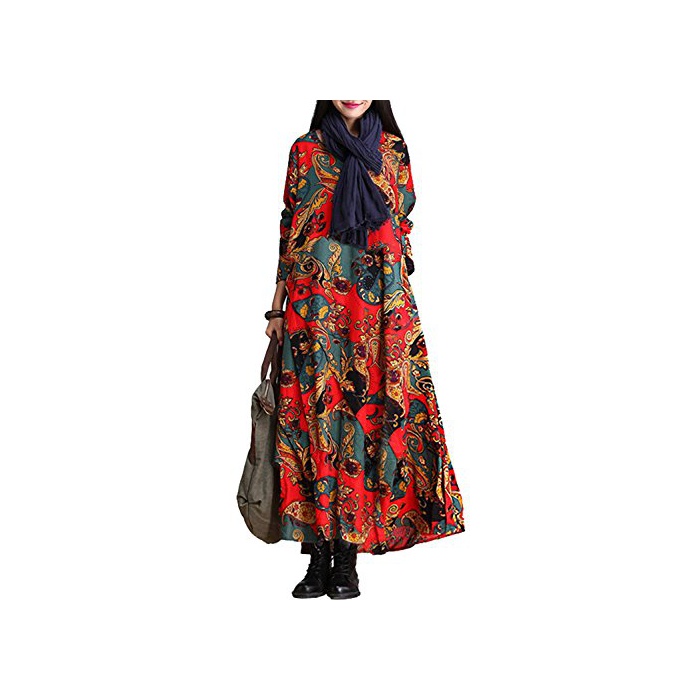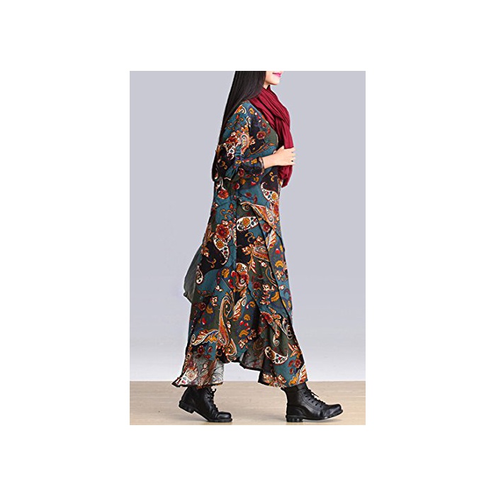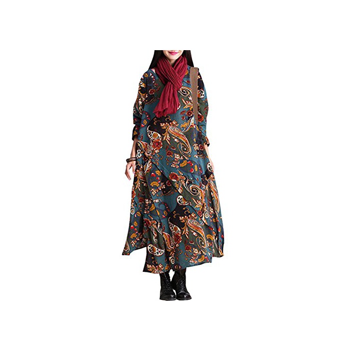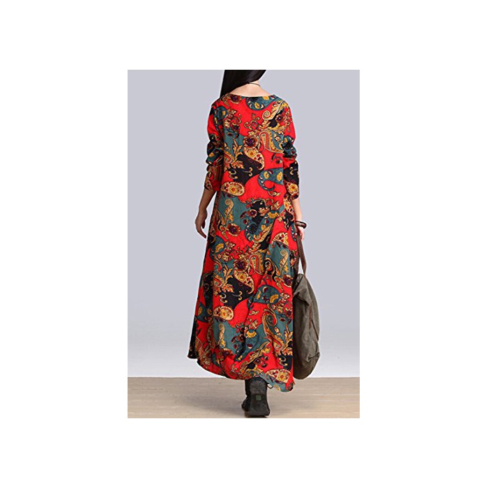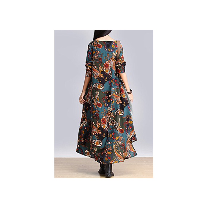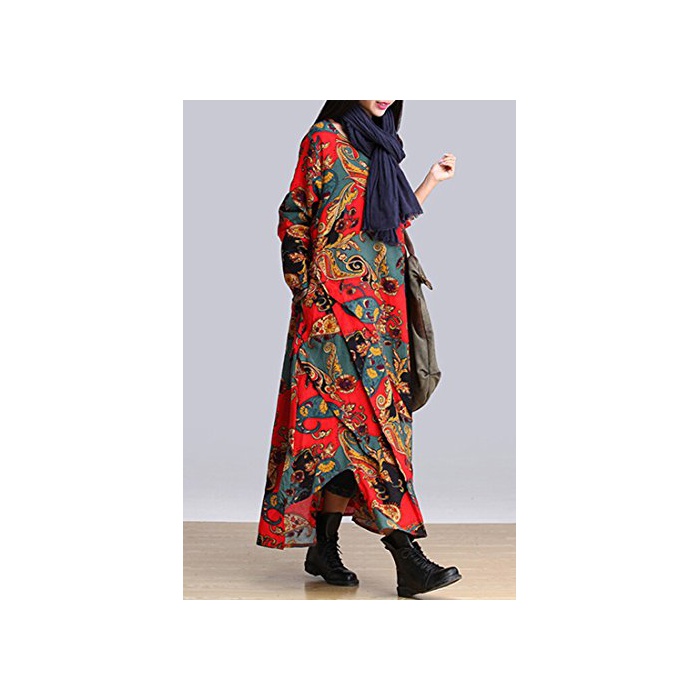 OASAP 빈티지 프린트 긴 소매 레이어드 맥시 원피스