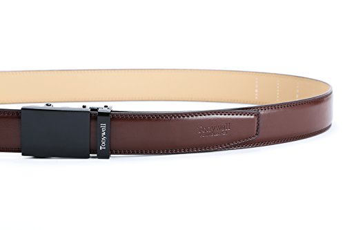 -. Feature : Genuine Leather - 3.5cm wide, smooth leather with no needless holes to crack or wear out / Easy to use.Simple, smooth ,just slide the belt into the buckle and pull the belt through, the buckle simply auto locks the belt. / Automatic Buckle Leather Belt for Men. Genuine leather quality belt, complemented with an hight fashion stylish buckle. / Tonywell leather belts for men features an easy removable buckle that allows you to cut the belt to your ideal size to give a primmer appearance. / 100% satisfaction guaranteed, For 30 days after the date of purchase, return your undamaged Tonywell product and receive a full refund for any reason, 180 days warranty. Our mission is to have our customers extremely gratified with the belt they purchased.