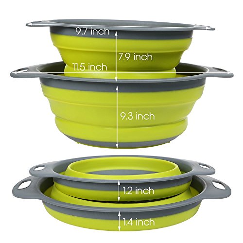 Colander Set, 11.5" and 9.7" Size YHXK Collapsible Colanders Set Food-Grade Silicone Kitchen Fruit Vegetable Baskets Folding Strainers Dishwasher Safe Set of 2 (Green)