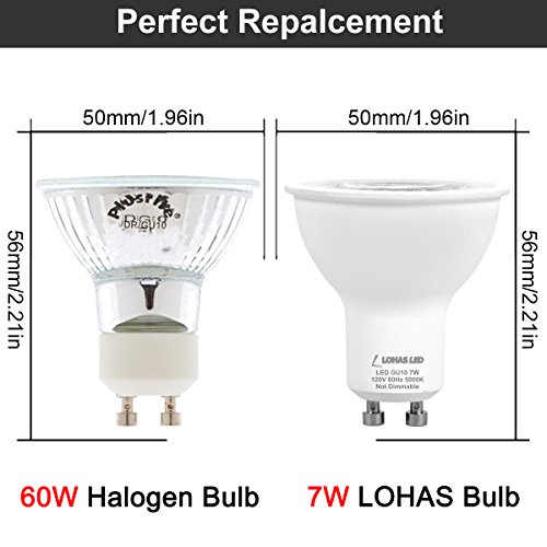 LOHAS GU10 LED Bulbs, 60W Equivalent Light Bulb(7Watt LEDs), Daylight 5000K LED Spotlight for Home Track Lighting, Recessed Lighting, Ceiling Lamps, Non Dimmable, 620LM, 120 Degree Beam Angle(10 Pack)