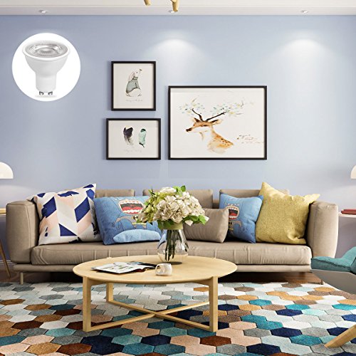 - LESS POWER-HUNGRY--Save electricity bill compared to traditional Halogen light bulbs. Replace a 60w traditional light bulb by a GU10 Base LED 7W LED.