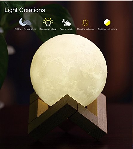 3D Printing Moon Lamp 7 Color with Wood Stand Base Home Decorative Table Desk Lamp Dimmable Touch Control with Remote Control USB Rechargeable (15cm/5.9”) Light Creations