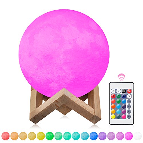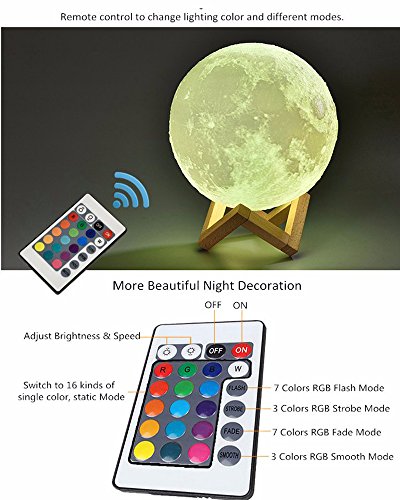2018 Newest Version-16 Colors moon lamp is a remote control LED Lamp with flash and fade modes.