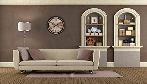 -. Binding : Misc. -. Brand : Kiera Grace -. Color : Black -. EAN : 0068589875105 -. Feature : 16-inch wide and 2-inch deep / Classic design with popular dial and case design / Large Roman numerals on decorative wall clock / Glass lens and high quality, accurate quartz movement / Made using high quality injection mold construction -. Label : AZ Home and Gifts -. Manufacturer : AZ Home and Gifts -. Model : HO87510-5 -. MPN : HO87510-5 -. PackageQuantity : 1 -. PartNumber : HO87510-5 -. ProductGroup : Home -. ProductTypeName : HOME -. Publisher : AZ Home and Gifts -. Size : 16" -. Studio : AZ Home and Gifts -. Title : Kiera Grace Map Wall Clock, 16-Inch, 2-Inch Deep, Black -. UPC : 068589875105