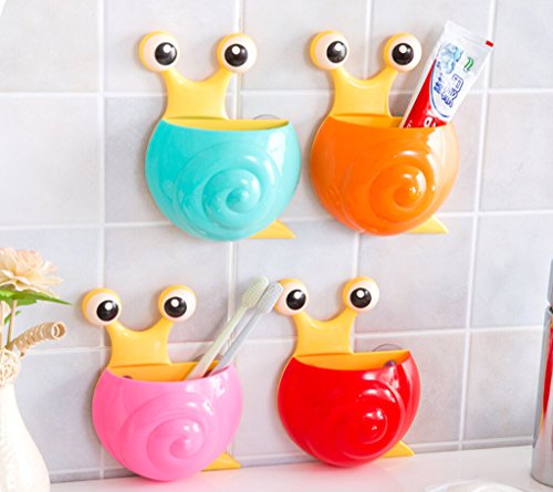 Cute Cartoon Snail Kids Toothbrush Toothpaste Holder Wall Suction Cup Mounted Container Bathroom Decor - Plum