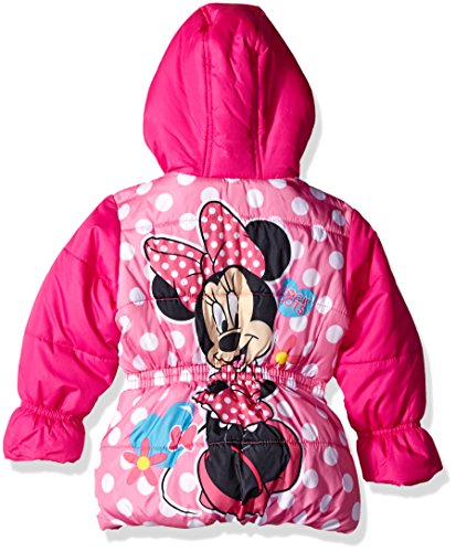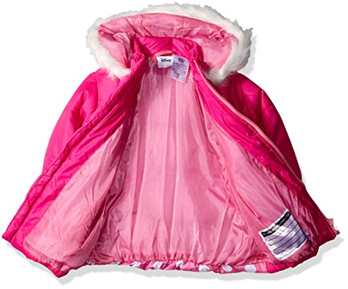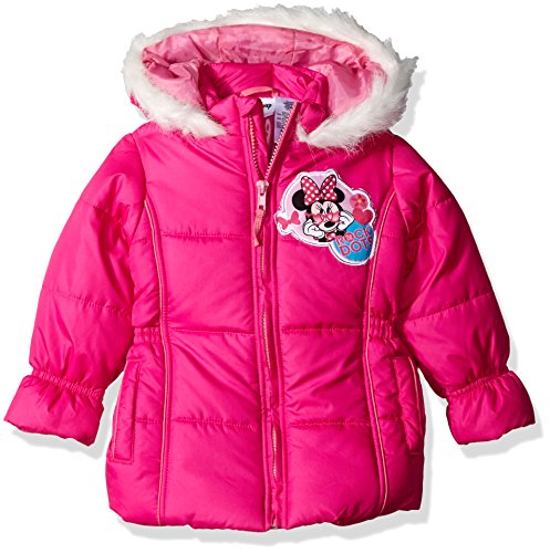 Minnie toddler girls' puffer jacket with faux fur hood and artwork on the back