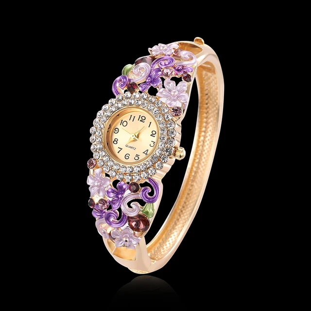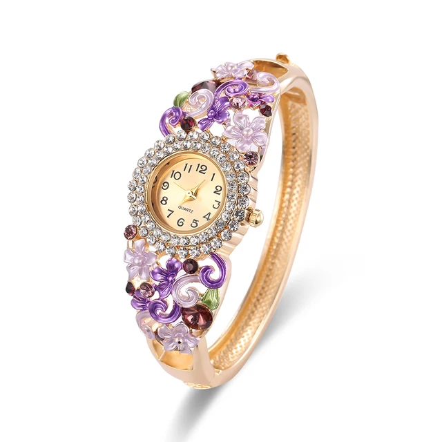 | [해외] 2017 패션 크리스탈 꽃 여성 석영 시계 럭셔리 캐주얼 팔찌 시계 크리스마스 라인 석 크리스탈 보석 선물 |