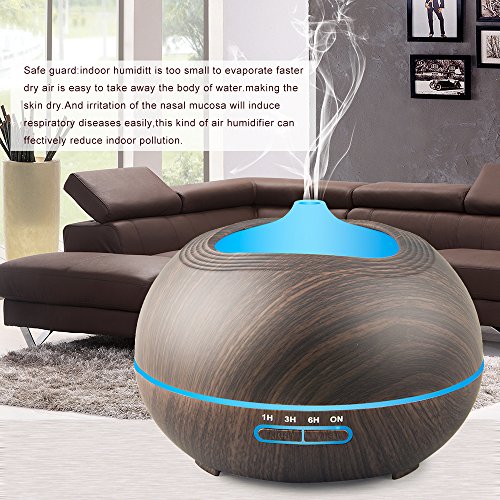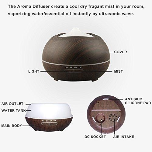 Scented Oil Diffuser Aromatherapy Premium Quality Black Wood Grain Finish 7 LED Color Changing Lights Cool Mist Blowing In the Air Perfect for Baby...