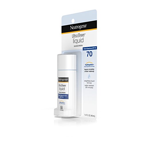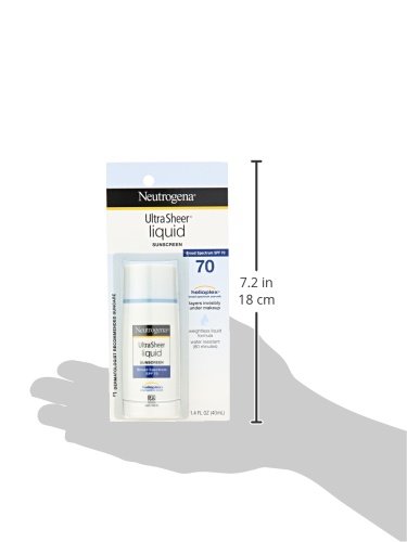 Get strong sun protection that feels light on your skin with Neutrogena Ultra Sheer Liquid Daily Sunscreen with Broad Spectrum SPF 70. Made for daily use, this water-resistant liquid sunscreen spreads easily over skin, absorbing instantly for a weightless feel. It provides an even, shine-free finish that works beautifully alone or under makeup and moisturizers. This sunscreen is formulated with clinically-proven Helioplex, an advanced sunscreen technology with superior broad-spectrum protection from skin-aging UVA rays and skin-burning UVB rays. When used as directed with other sun protection measures, this product can help decrease the risk of skin cancer and early skin aging caused by the sun. This liquid sunscreen is non-comedogenic, oil-free, and PABA-free.Feature