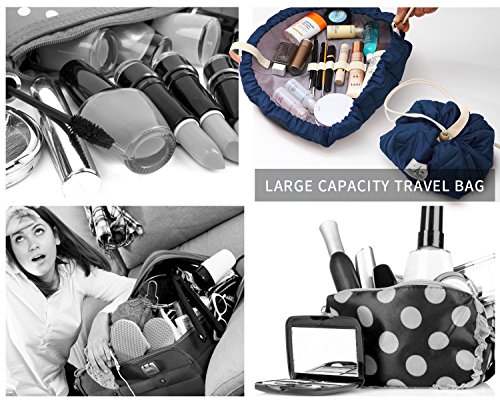 - ONLY 3 SECOND TO UNFOLD: Put all your travel toiletries in the magic cosmetic pouch for women & men, tighten the drawstring, quickly pack it up. If you're in a hurry you don't even have to fully open the makeup storage - pull the drawstring half way and grab what you need