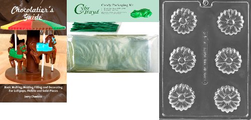 Cybrtrayd Mdk50GRBk-F121 Daisy Cookie Chocolate Candy Mold with Packaging Bundle, Includes 50 Cello Bags and 50 Green Twist Ties