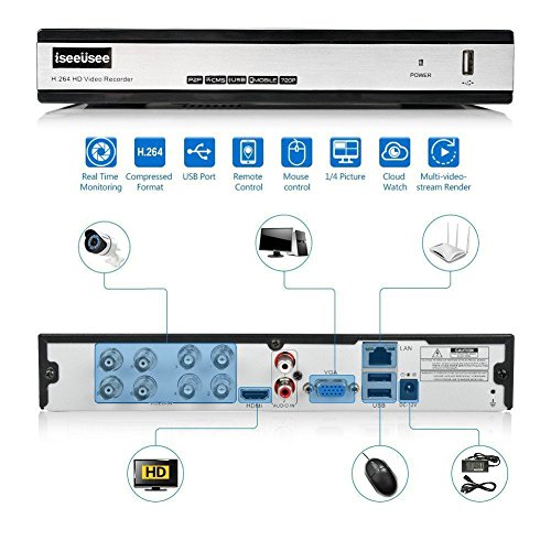 -. Binding : Electronics -. Brand : ISEEUSEE -. EAN : 0757450948733 -. Feature : EASY USE - Completely plug & play live view monitoring locally or remotely from PC, smart phone or tablet with push notification/alarm Pro App / SHARP CAMEAR -IP-66 Weatherproof HD night vision cameras with vandal-proof 3-axis bracket for Indoor / Outdoor Use / CRISP IMAGE - 720p 1200 TV line recording resolution (1280 x 720) support motion activated recording / DIY READY - all cables and accessories Included to install yourself / WARRANTY - FCC Certified with UL Compliant Power Adapter, one Year Quality Guarantee, Lifetime 24/7 ISEEUSEE Technical Support -. Label : KOCODA TECHNOLOGY CO LTD -. Manufacturer : KOCODA TECHNOLOGY CO LTD -. Model : TB720P-6pk-WB-2016 -. MPN : TB720P-6pk-WB -. PackageQuantity : 1 -. PartNumber : TB720P-6pk-WB -. ProductGroup : Photography -. ProductTypeName : SURVEILANCE_SYSTEMS -. Publisher : KOCODA TECHNOLOGY CO LTD -. Studio : KOCODA TECHNOLOGY CO LTD -. Title : ISEEUSEE 8 Channel Video Security System 1080N DVR with HDMI Output 6x 1200TVL Weatherproof Night Vision Surveillance Camera No Hard Drive -. UPC : 757450948733