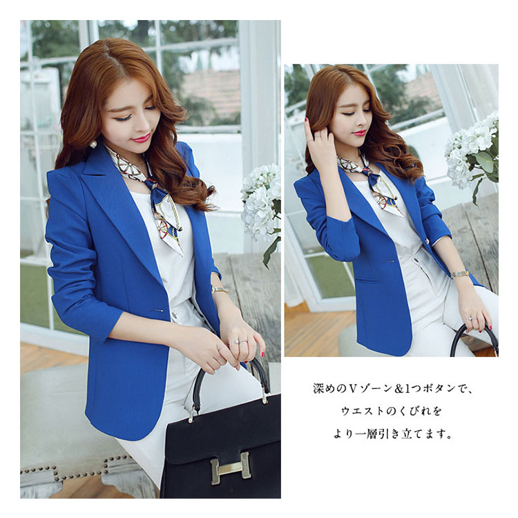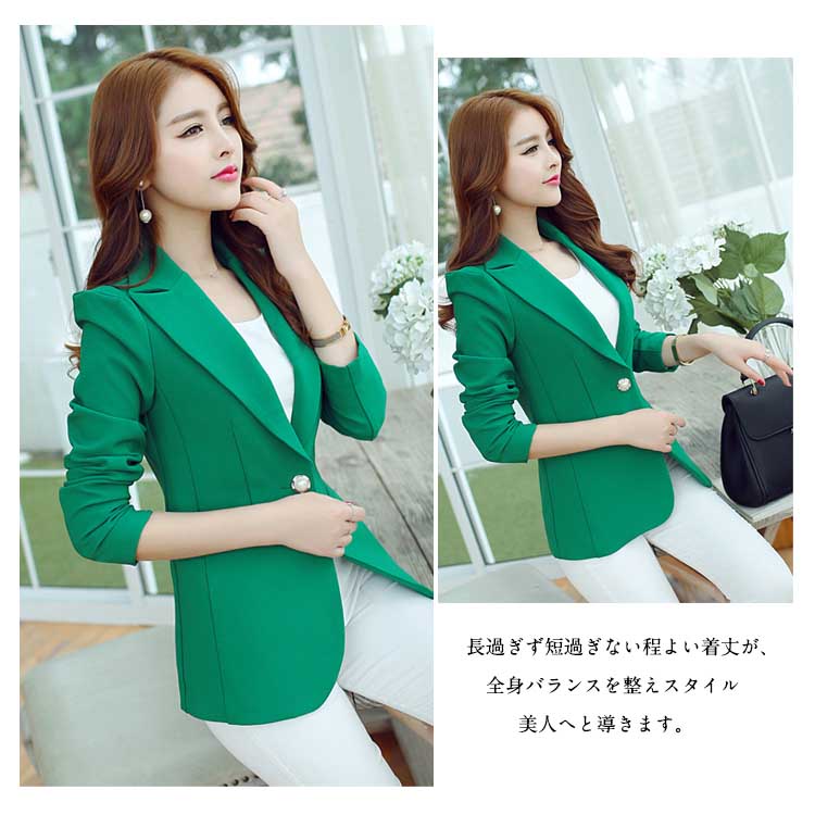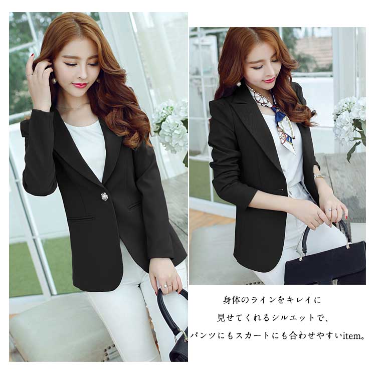| 通勤コーデに重宝、きちんとした印象のテーラードジャケットが登場♪深めのVゾーン&1つボタンで、ウエストのくびれをより一層引き立てます。長過ぎず短過ぎない程よい着丈が、全身バランスを整えスタイル美人へと導きます。身体のラインをキレイに見せてくれるシルエットで、パンツにもスカートにも合わせやすいitem。 | |