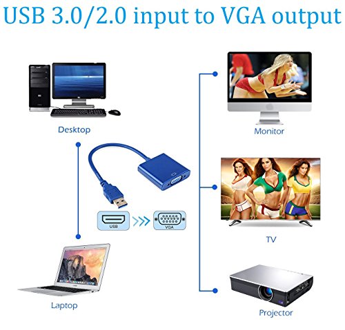 USB to VGA Adapter by Bangder,USB 3.0/2.0 to VGA Adapter Multi-display Video Converter- PC Laptop Windows 7/8/8.1/10,Plug and play No drivers Needed (Blue)