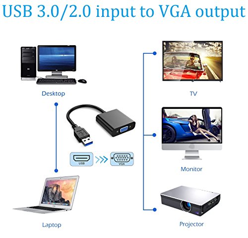 USB to VGA Adapter, USB 3.0/2.0 to VGA Adapter Multi-display Video Converter- PC Laptop Windows 7/8/8.1/10,Plug and play No drivers Needed (Black)