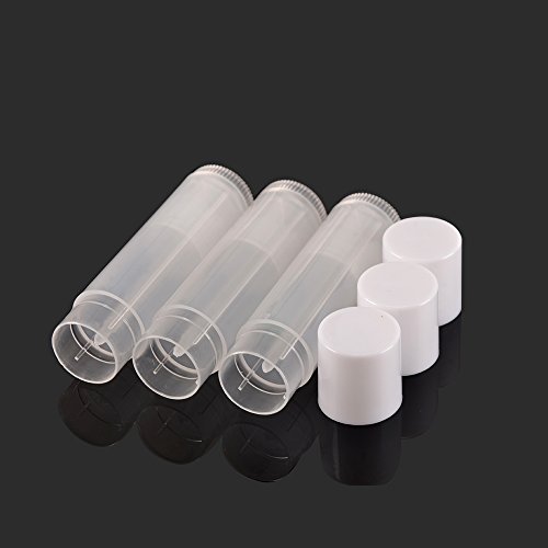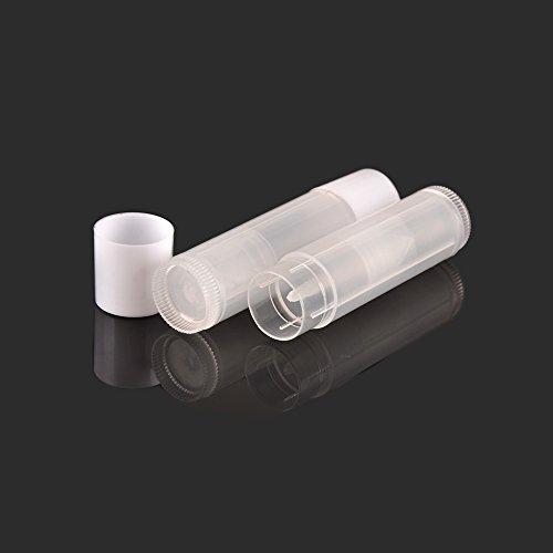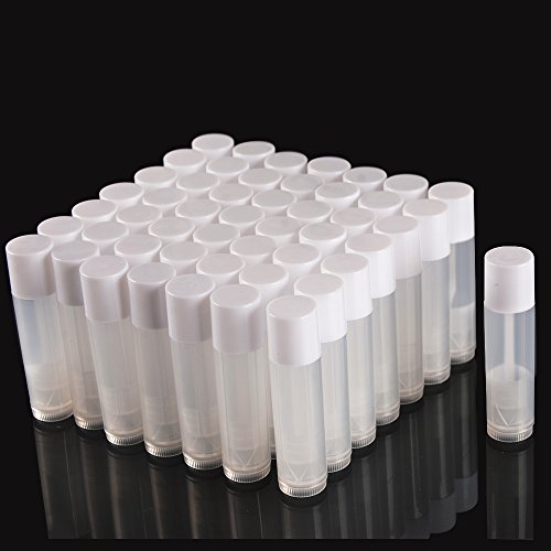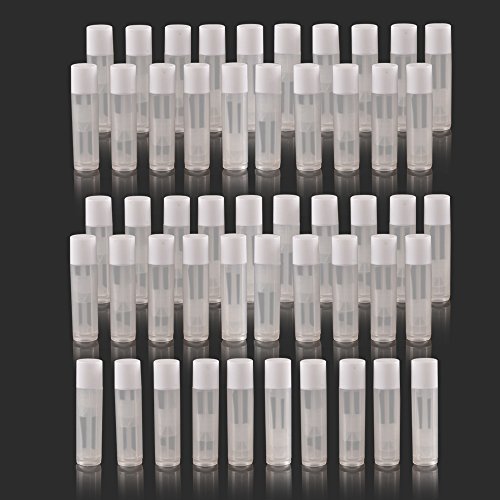 50 pack, Clear, Empty, 5.5 ml Lip Balm Container Tubes with White Caps