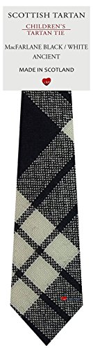 Studio : I Luv Ltd Publisher : I Luv Ltd Binding : Apparel Product Description Boys All Wool Tie Woven And Made in Scotland in MacFarlane Black and White Ancient Tartan * Woven and made in Scotland * Pure wool for softness and comfort * Fully lined for shape and presentation * Choose from hundreds of beautiful tartans * Necktie length 91 cm (35.8 inches) * Broadest width 6 cm (2.4 inches) Ties in this superb range are expertly woven and made by one of Scotland's premier weaving companies. Fashioned in pure wool in a huge selection of tartans they are sure to add colour and distinction to any outfit and any occasion. Although many will choose a tartan tie for its wealth of beautiful colours, for those of us with Scottish ancestry, a Clan tartan is a link to our family's place in Scotland's often turbulent history. A tie in that tartan is the perfect choice for the junior highlander. 0 |