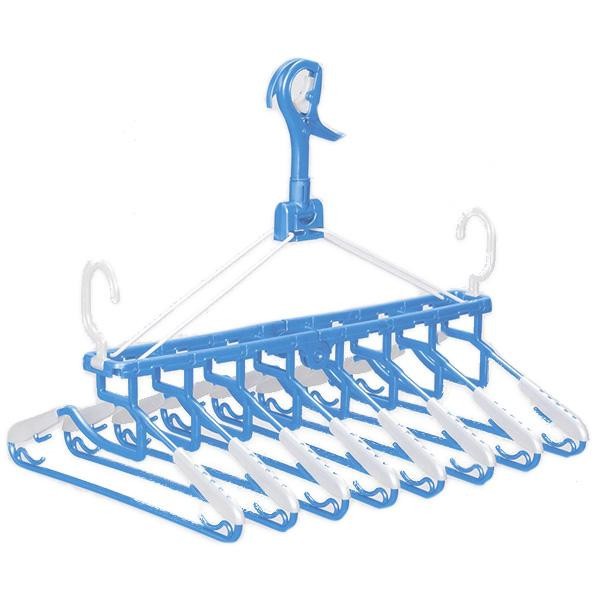| シャツやタオルをまとめてすっきり干せる、折りたたみ式の8連洗濯ハンガーです。急な降雨時など、洗濯物をサッと取り込みやすい下折れ式。 |