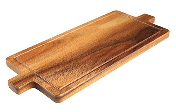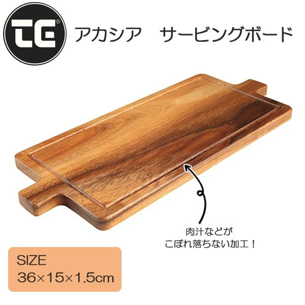 天然のアカシア材を使用した持ち運びに便利なサービングボード。ボードの隅に切り込みを入れ、肉汁等がこぼれ落ちない加工がされております。 |