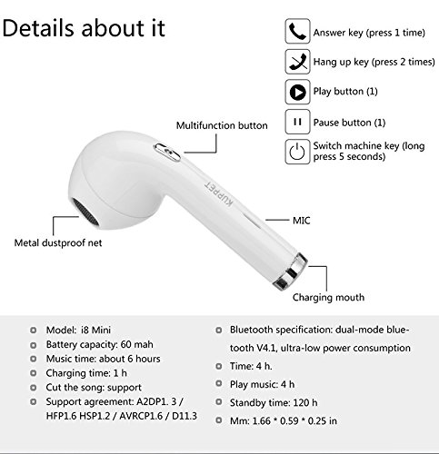 Bluetooth V4.1 Wireless Technology:Single earbud can be quickly paired with smart phones, as well as a variety of Bluetooth devices. Can connect with 2 different devices at the same time and would connect automatically with a phone paired previously.