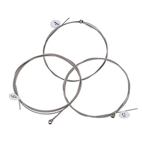 Studio : etfshop Publisher : etfshop Product Description Note: There is a little difference between the color and object Specification: Material:Metal Color:Silver Model:CE60-SL Standard:009.011.016.024.032.042 Diameter: 009:0.23mm 011:0.28mm 016:0.41mm 024:0.61mm 032:0.81mm 042:1.07mm Length:about 1M Dimension:16 x 11cm/6.3 x 4.33""(L x W) Weight:14g Feature: Professional super light nickel plated steel strings,with environmental anti-rust coat. A set of six, all of the six electric bass guitar strings can be used Has pronunciation loud, sounds sweet and so on. Package Include: 6 x Electric Guitar Strings 0