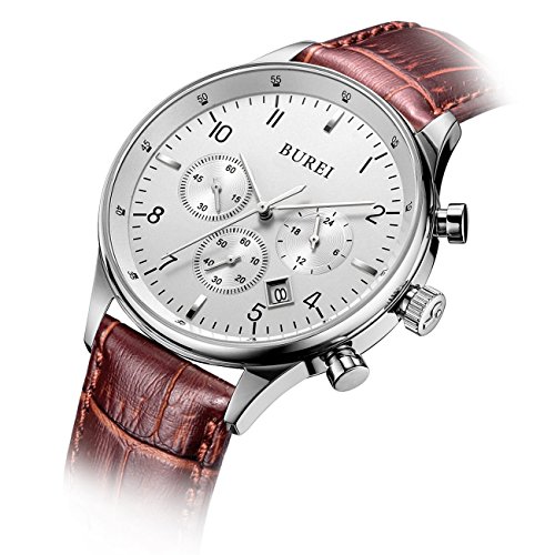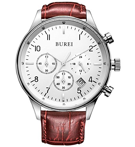 -. Feature : 多針アナログ表示、三つの小さな文字盤が付き、12/ 24時間の時間設置、クロノグラフ機能を持って、ファッションな時計。 / 耐衝撃、耐ひっかきミネラルガラス、ほどよい重厚感が、腕時計としての存在感を際立たせる。 / バンドは抗アレルギー性の柔らかい仔牛の本革を使用しています。シンプルでカジュアルもビジネスも両方いける腕時計。 / 防水166フィート(50メートル)日常生活防水仕様、便利なスタンダードウォッチです。 / 同梱品:本体、説明書、専用ケース、2年間品質保証カード。丁寧な梱包、自分へのご褒美としても大切な方へのギフトにも最適です。
