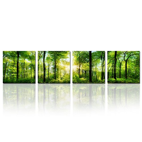 -. Title : Hello Artwork - Summer Forest in Sunshine Landscape Panoramic Giclee Canvas P.R.Ints Paintings on Canvas Wall Art for Living Room Decorations Canvas Set of 4 Ready to Hang