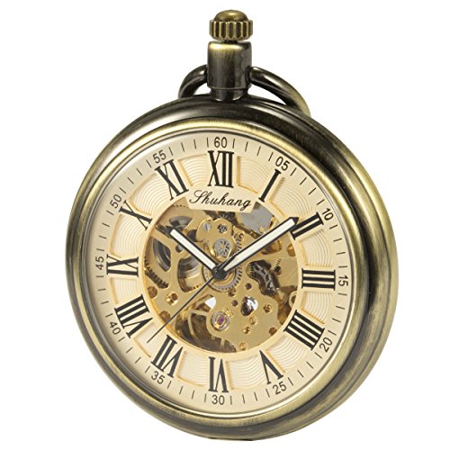 -. Title : ManChDa Steampunk Mechanical Bronze Skeleton Automatic Mechanical Pocket Watch Open Face Fob for Men