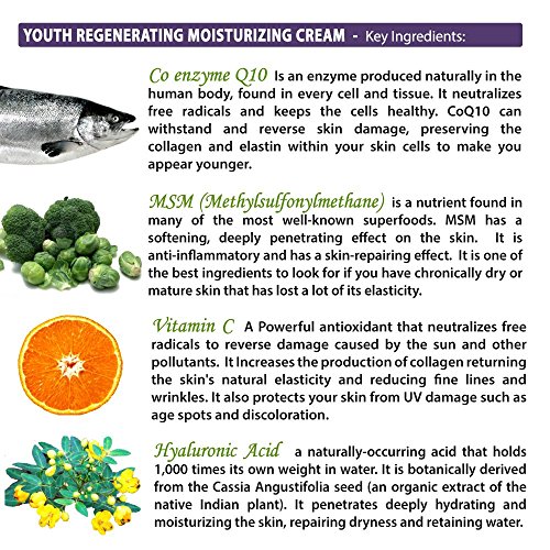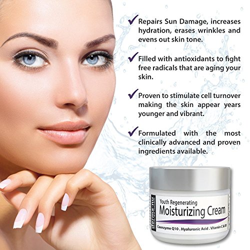 -. Feature : PROVEN TO STIMULATE CELL TURNOVER, MAKING THE SKIN APPEAR YEARS YOUNGER AND VIBRANT - Created with the most clinically advanced and proven ingredients available. It is a turn-back-the-clock Skin Treatment product that every person should have. / FILLED WITH ANTIOXIDANTS THAT CAN REDUCE SKIN DAMAGE - Rich in Coenzyme Q10, Hyaluronic Acid, Vitamin C & Vitamin B5. Facial Moisturizer Restores Firmness, Treats Sun Damage, increases hydration, erases wrinkles, smooths skin texture, increases skin brightness and evens out skin tone. / EVERYTHING THAT YOU EVER WANTED IN AN ANTI AGING SKIN CREAM HAS BEEN ADDED AT MAXIMUM PERCENTAGE FOR GUARANTEED POTENCY, PURITY AND PROFOUND RESULTS. / DIMINISHES THE APPEARANCE OF FINE LINES AND WRINKLES - Boosts collagen production for a more youthful appearance. Non-Irritating, non-comedogenic & safe for all skin types, including sensitive skin. / ALL NATURAL - ORGANIC INGREDIENTS - MADE IN THE USA - PARABEN FREE - NOT TESTED ON ANIMALS - 100% SATISFACTION GUARANTEED