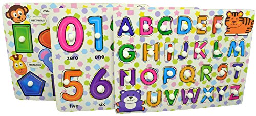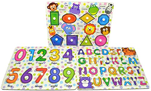 -. Title : Lollipop Toys 3 Pack Learning 1 2 3, Alphabet , Shapes Wooden Peg Puzzle Bundle