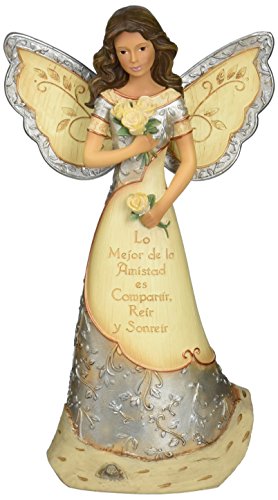 Elements Amistad Friendship Hispanic Angel Figurine by Pavilion, 9-Inch, Inscription Lo Mejor De La Amistad Es Compartir, Reir Y Sonreir
