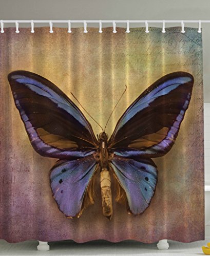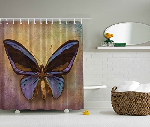 Artsy Shower Curtain by Ambesonne, Monarch Butterfly Vintage British Grunge Victorian Photography Art Printed Theme Bath Decoration Home Accent Print Polyester Fabric Purple Brown Mustard