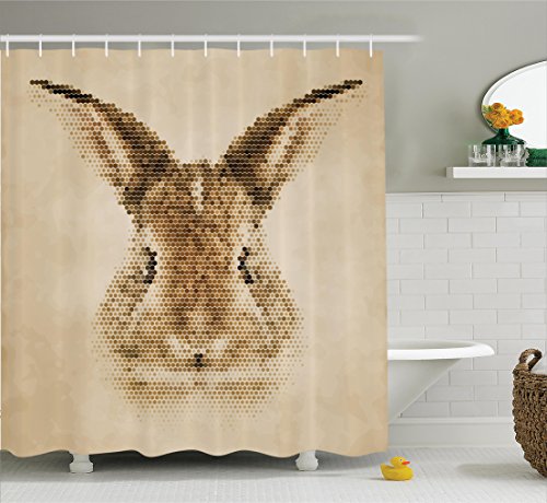 House Decor Shower Curtain Set By Ambesonne, Rabbit Portrait with Digital Geometrical Dots Points Vintage Color Bunny Face, Bathroom Accessories, 69W X 70L Inches, Light Brown